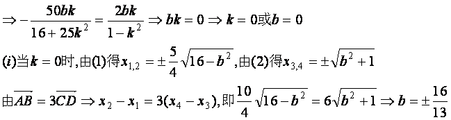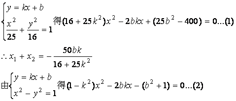 y=kx+b,如图所示,l与椭圆、双曲线的交点为: