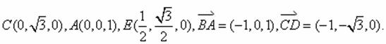 (II)解:以O为原点,如图建立空间直角坐标系,则![]()