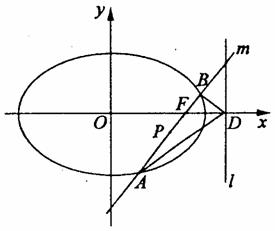原点距椭圆Q的右准线l最远.此时,设l与x轴交点为D,当直线m绕点F转动到