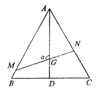 点,线段MN经过△ABC的中心G.设∠MGA=α(