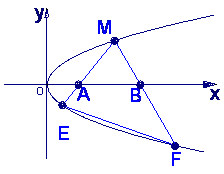 如图,M是抛物线上y2=x上的一点,动弦ME、MF分别交x轴于A、B两点,且MA=MB.