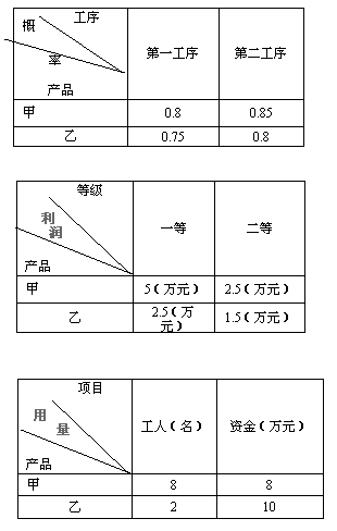 某工厂生产甲、乙两种产品,每种产品都是经过第一和第二工序加工而成,
