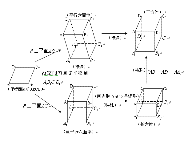 (1)平行四边行、直平行六面体、长方体、正方体的定义及其联系