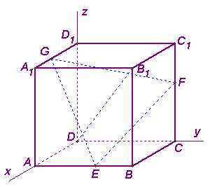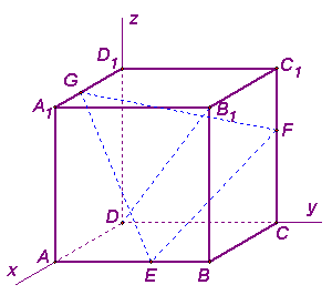 分析:本题的要害是线面垂直和垂足,从题设看,本题具有对称特征,要证DB1⊥平面EFG,只要证DB1与△EFG的任一边垂直,△EFG是正三角形,垂足与△EFG的中心是否可以吻合,为解题的简洁,是否可以利用向量坐标的方法,请试之。