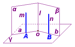 证法(二)如图,分别在α,β内作异于l的直线m,n使得m⊥a于A,n⊥b于B