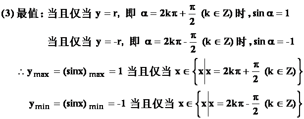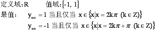 最值: ymax=1,当且仅当x∈{x|x=2kл+л/2,(k∈Z)}