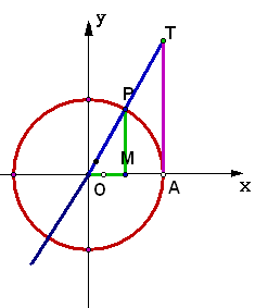 单位圆切线,与α角终边或其延长线交