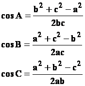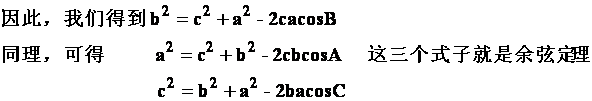 余弦定理:三角形任何一边的平方等于其他两边平方的和减去这两边与它们夹角的积的两倍