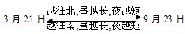 (2)太阳直射点向北移动,则北半球昼变长,夜变短,太阳直射点向南移动,则北半球昼变短,夜变长;南半球相反。