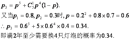 (III)至少换4只灯泡包括换5只和换4只两种情况,换5只的概率为p5