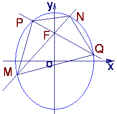 当MN或PQ中有一条直线垂直于x轴时,另一条直线必垂直于y轴. 不妨设MN⊥y轴,则PQ⊥x轴![]()