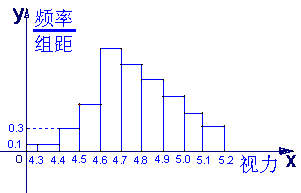 视力情况,得到频率分布直方图,如右,由于不慎将部分数据丢失,但知道