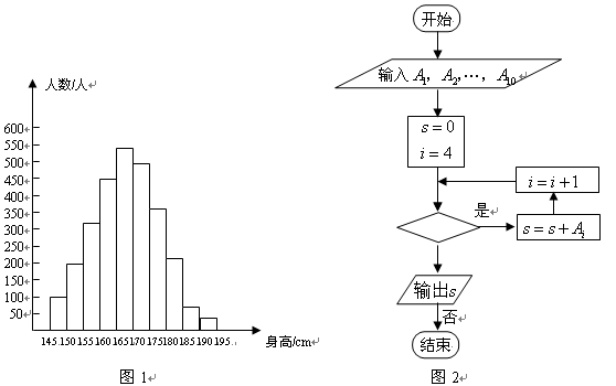图2是统计图1中身高在一定范围内学生人数的一个算法流程图.现要统计