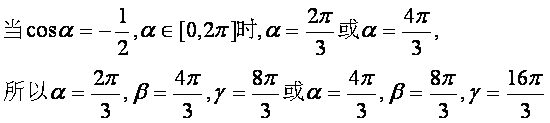解:∵α,β,γ成公比为2的等比数列,∴β=2α,γ=4α