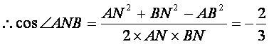 ∴BN⊥CM,故∠ANB为所求二面角的平面角![]()