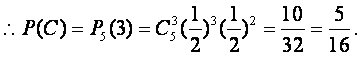 (III)设C表示事件“抛掷5次,向上的数为奇数恰好出现3次”,即在5次独立重复试验中,事件“向上的数为奇数”恰好出现3次,