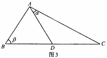 如图3,D是直角△ABC斜边BC上一点,AB=AD,记∠CAD=α,∠ABC=β.