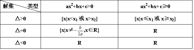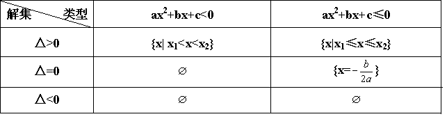 设`a>0,x_1,x_2`是方程`ax^2+bx+c=0`的两实根,且`x_1<x_2`,一元二次不等式的解集如下表所示: