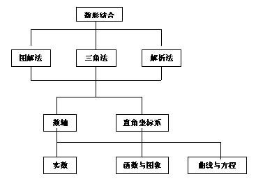 作为一种数学思想方法,数形结合的应用大致又可分为两种情形:或者借助于数的精确性来阐明形的某些属性,或者借助形的几何直观性来阐明数之间的某种关系。这就是说,当我们把数形结合当作数学思想来应用时,数与形两者这中,一个为手段(方法),另一个为目的。事实上,第一种情形,数是手段,形为目的;第二种情况,形为手段,数为目的。例如,应用曲线的方程可以精确地阐明曲线的几何性质,是属于前一种情形,这是以方程(数)为手段解决曲线(形)的问题。应用函数的图象可以直观地说明函数的性质,则属于后一种情形。这是以图象(形)为手段来解决函数(数)问题。