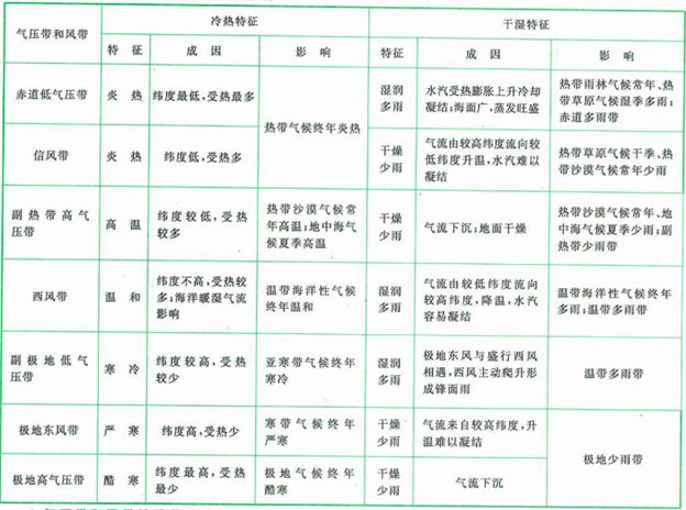 2、气压带风带的特征、成因和影响:
