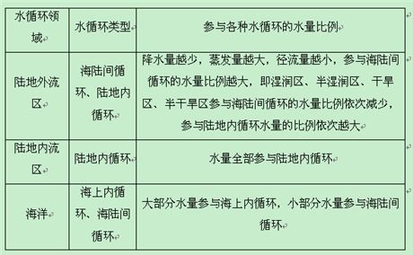 1、水循环的领域包括:陆地外流区、陆地内流区、海洋。