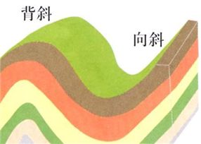 向斜岩层向下弯曲,中间新,两翼老,发育成山谷。有时,向斜由于槽部受挤压不易被侵蚀而形成山岭。