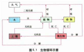 〖应用〗自然地理要素间的物质能量交换 生物循环与自然地理环境 生物既是自然地理环境的产物,又是自然地理环境的创造者。生物对自然地理环境的作用,归根结底是由于绿色植物能够进行光合作用。光合作用是绿色植物通过叶绿素,利用光能,把二氧化碳和水及无机盐合成为贮藏能量的有机物(主要是糖类),并且释放出氧的过程。植物光合作用的产物,则又成为动物的食物。植物和动物的有机残体被微生物分解后,又以无机物的形式归还到周围环境中。这种有机质的合成与分解过程,称为生物循环。生物循环促使自然界物质和化学元素不断地迁移运动,能量不断地流动、转化,从而把自然地理环境中的有机界和无机界联系起来。