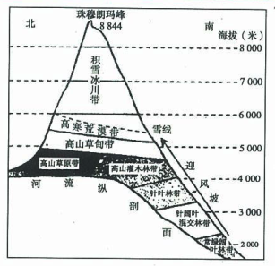 1、珠穆朗玛峰地区南、北坡的垂直自然带: