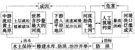 黄土高原的水土流失,导致黄河下游形成了地上河。如下图所示: