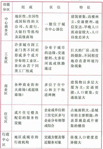 〖层次/类型/顺序〗城市功能区 不同城市功能区: