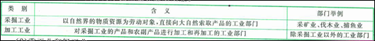 (1) 按照生产对象的不同分为采掘工业和加工工业