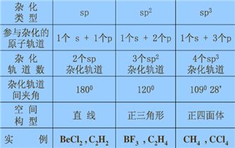 〖三种常见的杂化轨道比较〗