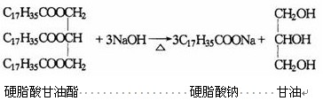 以硬脂酸甘油酯为主要成分的油脂和烧碱溶液混合加热,水解生成的硬脂酸钠就是肥皂的主要成分。