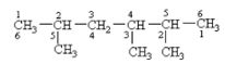②编号位,定支链。以靠近支链最近的一端为起点,将主链中的碳原子用阿拉伯数字编号,以确定支链的位置。 例:在下面的烷烃中,如果从左向右编号(下图红色箭头所示),2位上有一个甲基;如果从右向左编号(下图蓝色箭头所示),3位上才有甲基。两者相比较,从左向右编号可以使甲基位次较低,因此应选择从左向右的顺序给碳链编号。