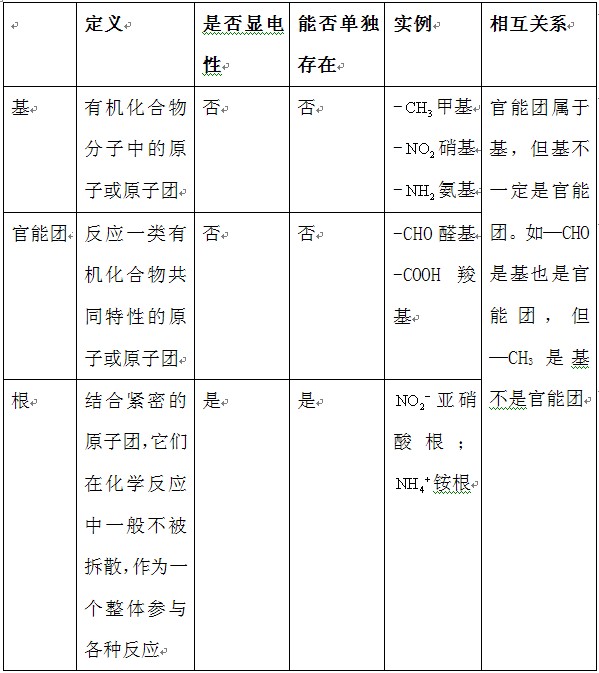 全网搜索"基、官能团、根的比较"相关