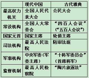 全网搜索"比较古代雅典与现代中国的政治制度"相关