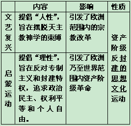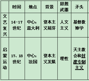 重点知识点梳理 1、启蒙运动的背景: ①经济基础:新航路的开辟,资本主义经济的发展 ②阶级基础:资产阶级力量的壮大 ③思想基础:文艺复兴和宗教改革推动了人们思想解放 ④理论武器:近代科学的兴起,理性成为资产阶级反封建的理论武器 ⑤政治原因:天主教会和中央集权民族国家的封建专制统治,英国资产阶级革命的影响 2、启蒙运动的代表人物及思想主张: (1)伏尔泰(法国): ①反对君主专制,但赞成“开明专制”,倡导君主立宪; ②提倡自然权利,天赋人权; ③法律面前人人平等。但不反对财产上的不平等。 (2)孟德斯鸠(法国):《论法的精神》,“三权分立”学说,为近代资本主义国家政治体制的建立奠定了理论基础。 (3)卢梭(法国):《社会契约论》,“主权在民”和“社会契约论”,描绘了资产阶级共和政体的政治蓝图,成为法国大革命的先导,并直接影响了美国政治制度的建立。 (4)康德(德国):总结了启蒙思想,提出思想的自由。 3、启蒙思想对人文主义的发展: (1)启蒙运动丰富和发展了人文精神的内涵,把反封建、反宗教神学的斗争推进到反对封建专制制度、建立资产阶级“理性王国”、按照资产阶级利益构建政治制度的高度上来。 (2)理性的含义:与感性相对,指人的思考与判断,即科学的思维。它强调凡事要运用自己的智力,以自己的思维去认识、判断和解决问题,而不依赖天意和神的旨意,其目的是为保障人的自然权利,说到底是资产阶级要求民主、自由、平等。 (3)启蒙的真谛:能够自觉地运用自己的理智,自由地表达自己的思想和言论。 4、文艺复兴和启蒙运动的比较