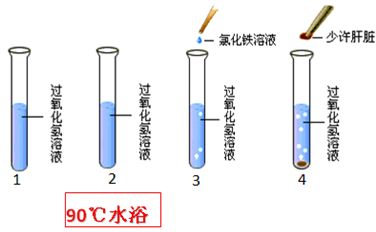 从实验现象上来看,1号试管无明显现象;2号试管有气泡放出。这一现象说明加热能促进 的分解,提高反应速率。 3号与4号试管未加热,但是也有大量气泡产生,说明 中的 和新鲜肝脏中的 酶都能降低 的活化能,加快 分解的速率。 四、注意事项: 1、关于选材 (1)实验时必须用新鲜的动物肝脏,这是因为酶是蛋白质,时间过长,过氧化氢酶等有机物就会在腐生细菌的作用下分解,组织中的这些物质会减少且活性降低。 (2)实验使用肝脏的研磨液,这样可以加大过氧化氢酶与过氧化氢的接触面积,从而加速过氧化氢的分解。 2、操作中的注意事项 (1)加入催化剂后,要用棉花塞塞紧试管口,以免氧气逸出,轻轻振荡试管中物质混合均匀。 (2)滴加氯化铁溶液和滴加肝脏研磨液不可共用一支试管。否则,由于酶的催化效率的高效性,少量酶带入氯化铁溶液中也会影响实验结果的准确性,甚至使人产生错觉,作出错误的判断。 (3)过氧化氢有一定的腐蚀性,注意不要接触皮肤。