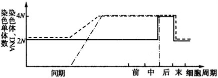〖曲线图〗 一个细胞中染色体数目(——)、DNA含量(------)、染色单体数目(—·—·—)的变化规律可用下列曲线图表示。