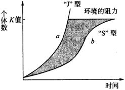 图中,阴影部分表示:①环境中影响种群增长的阻力(阴影越大阻力越大);②其数量表示通过生存斗争被淘汰的个体数。