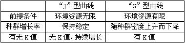 两种增长方式的差异主要在于环境的阻力对种群数量增长的影响
