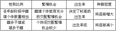 2、相同年龄组成情况下,性别比例对种群密度的影响及原因: