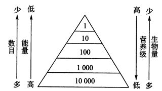 (2)能量金字塔每一台阶代表食物链中每一营养级生物所含能量多少。