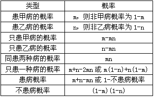综合运用 〖内容〗 综合运用:当两种遗传病之间具有“自由组合”关系时,各种患病情况的概率如下表: