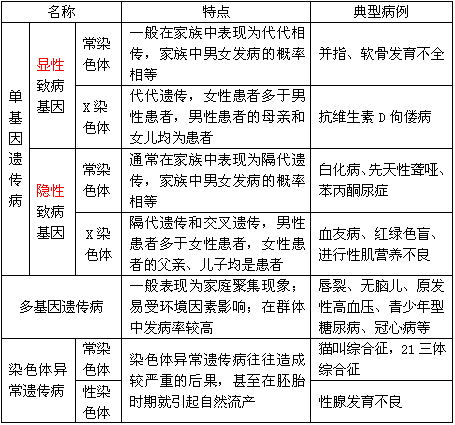 单基因遗传病有明显的性别比例;多基因遗传病有明显的家族遗传;染色体异常遗传病无性别差异。
