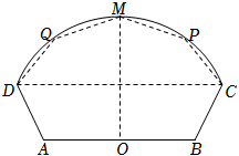 2022年高考数学上海19(14分)在如图所示的五边形中,$AD=BC=6$,$AB=20$,$O$为$AB$中点,曲线$CD$上任一点到$O$距离相等,角$\angle DAB=\angle ABC=120^\circ$,$P$,$Q$关于$OM$对称,$MO\bot AB$;