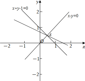 (4分)$x-y\leqslant 0$,$x+y-1\geqslant 0$,求$z=x+2y$的最小值 $\dfrac{3}{2}$ . 分析:根据已知条件作出可行域,再求目标函数的最小值即可. 解:如图所示: