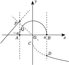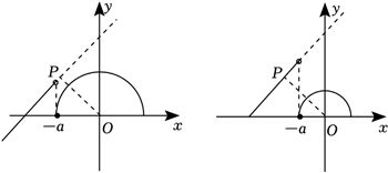 (5分)设$a > 0$,函数$f(x)=\left\{{\left.\begin{array}{l}{x+2,x < -a,}\\ {\sqrt{{a^2}-{x^2}},-a\leqslant x\leqslant a,}\\ {-\sqrt{x}-1,x > a\cdot }\end{array}\right.}\right.$给出下列四个结论,正确的序号为____. ①$f(x)$在区间$(a-1,+\infty )$上单调递减; ②当$a\geqslant 1$时,$f(x)$存在最大值; ③设$M(x_{1}$,$f(x_{1}))(x_{1}\leqslant a)$,$N(x_{2}$,$f(x_{2}))(x_{2} > a)$,则$\vert MN\vert > 1$; ④设$P(x_{3}$,$f(x_{3}))(x_{3} < -a)$,$Q(x_{4}$,$f(x_{4}))(x_{4}\geqslant -a)$,若$\vert PQ\vert$存在最小值,则$a$的取值范围时$(0$,$\dfrac{1}{2}]$. 答案:②③ 分析:先大致画出$f(x)$的草图,再根据四个选项逐一判断,对于选项①,取特殊值$a=2$判断函数函调性即可;对于选项②,分别判断$a\geqslant 1$时每段函数的最值情况,再判断是否存在最大值;对于选项③,结合图象分析$\vert MN\vert$最小值的情况,即可得出$\vert MN\vert$的范围;对于选项④,针对图像分析$\vert PQ\vert$存在最小值的情况,可得直线$y=-x$需要与前两段函数图像都有交点才可满足,进而可求出$a$的取值范围. 解:$a > 0$,当$x < -a$时,$f(x)=x+2$,图像为一次函数; 当$-a\leqslant x\leqslant a$时,$f(x)=\sqrt{{a}^{2}{-x}^{2}}$,图像为以$(0,0)$为圆心,$a$为半径的圆的上半弧; 当$x > a$时,$f(x)=-\sqrt{x}-1$,图像为单调递减的曲线; 其函数图象大致如下: