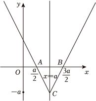 则$A(\dfrac{a}{2}$,$0)$,$B(\dfrac{3a}{2}$,$0)$,$C(a,-a)$,则$\vert AB\vert =\dfrac{3a}{2}-\dfrac{a}{2}=a$, 则$\Delta ABC$的高$h=a$, 则$S_{\Delta ABC}=\dfrac{1}{2}\cdot a\cdot a=2$,得$a^{2}=4$,即$a=2$.