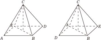 (5分)空间中有三个点$A$、$B$、$C$,且$AB=BC=CA=1$,在空间中任取2个不同的点$D$,$E$(不考虑这两个点的顺序),使得它们与$A$、$B$、$C$恰好成为一个正四棱锥的五个顶点,则不同的取法有____种. 答案:9. 分析:根据正四棱锥的性质,分类讨论,即可求解. 解:如图所示,设任取2个不同的点为$D$、$E$,